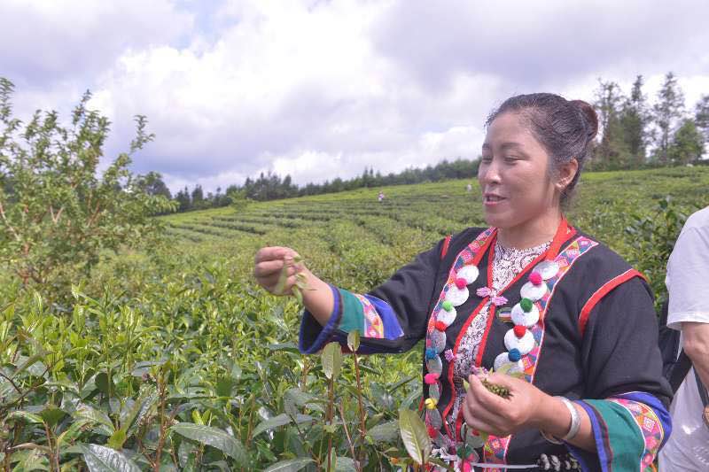 長(zhǎng)田壩村支部書記沙路正熱情地向我們介紹茶園種植的成果
